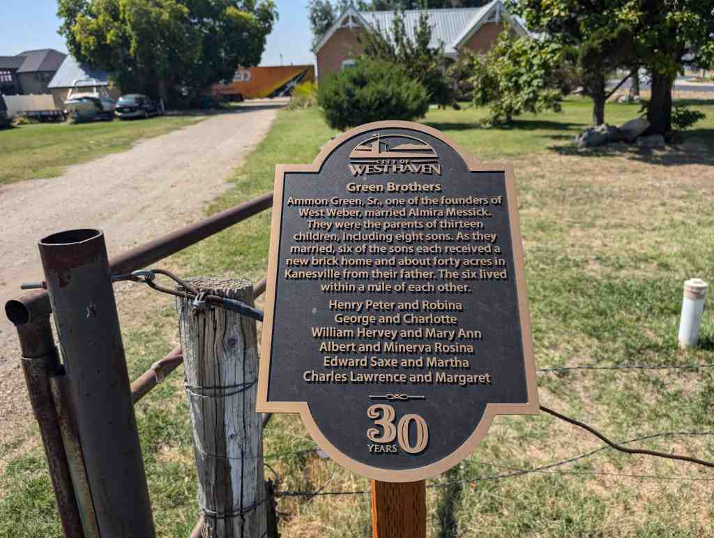 Ammon Green, Sr., one of the founders of West Weber, married Almira Messick. They were the parents of thirteen children, including eight sons. As they married, six of the sons each received a new brick home and about forty acres in Kanesville from their father. The six lived within a mile of each other.