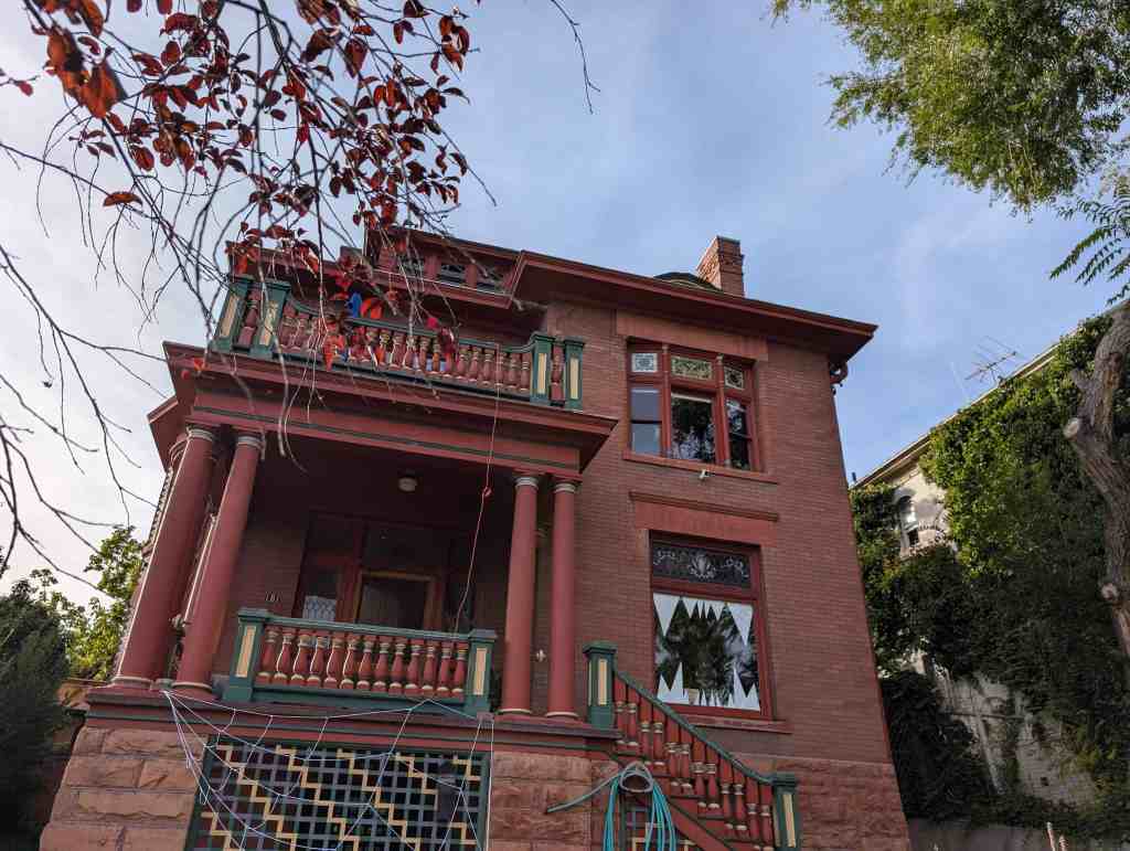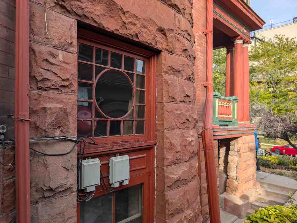 As Victorianism evolved in Utah, it became common to combine features of various styles (Victorian as well as others), a practice known as “eclecticism.” With this house, Kletting incorporated Victorian elements – irregular composition, decorative leaded windows, and decorative railings – but tempered them somewhat with more stately (perhaps more dignified) entry porch with its Classical columns derived from the Colonial Revival style.