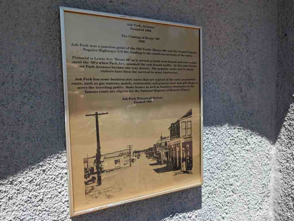 Ash Fork was a junction point of the Old Trails (Route 66) and the Grand Canyon Nogales Highways (US 89), leading to the southern sections of the state.