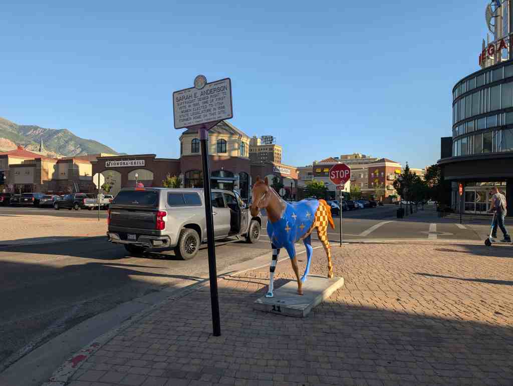 Part of Ogden’s Pioneer Days 75th Celebration was to put out 60+ fiberglass horse sculptures painted in different ways. This is part of that series, the rest can be see on this page.