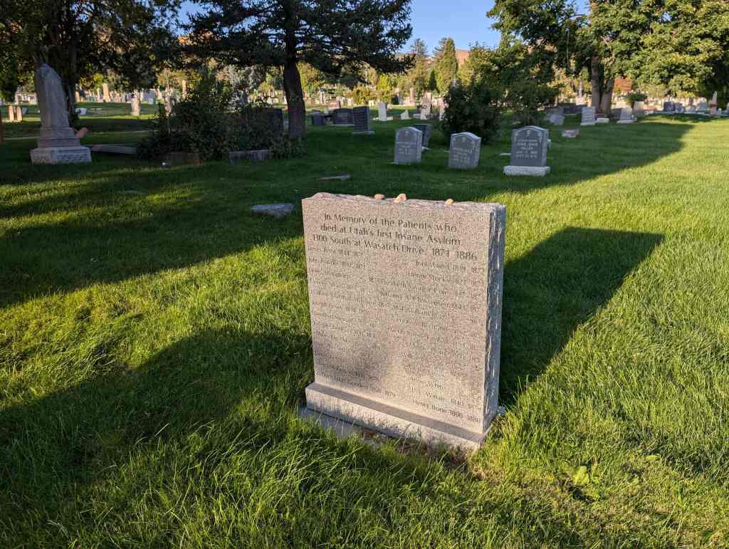 This monument in the Salt Lake Cemetery is in memory of those who died here: