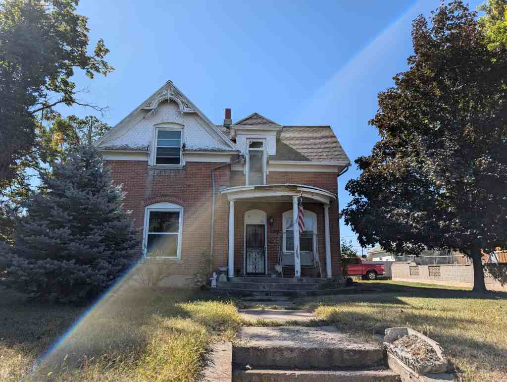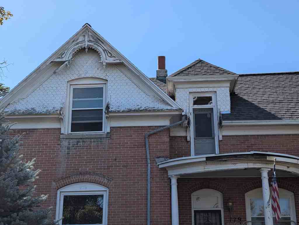 Ira Williams built this home in 1899. Built with double layers of bricks with an air space between, the walls never sweat. This home was the first home in Hyrum to have running water. It was piped in from the spring across the street to the west. Pay particular attention to the scalloped gables and the decorative upper gables. The corner work over the two small windows on each side of the house is the same as on the Soren Hansen home across the street. The spindled widow’s walk is now gone.