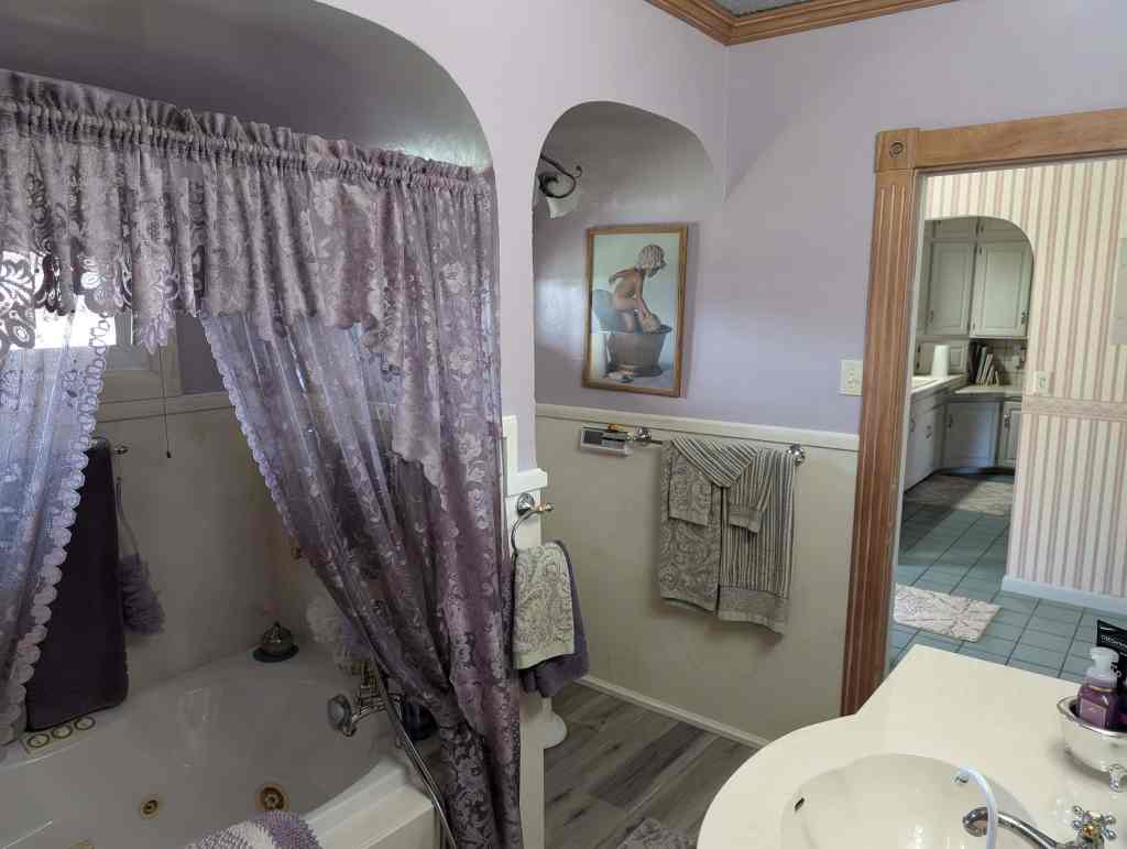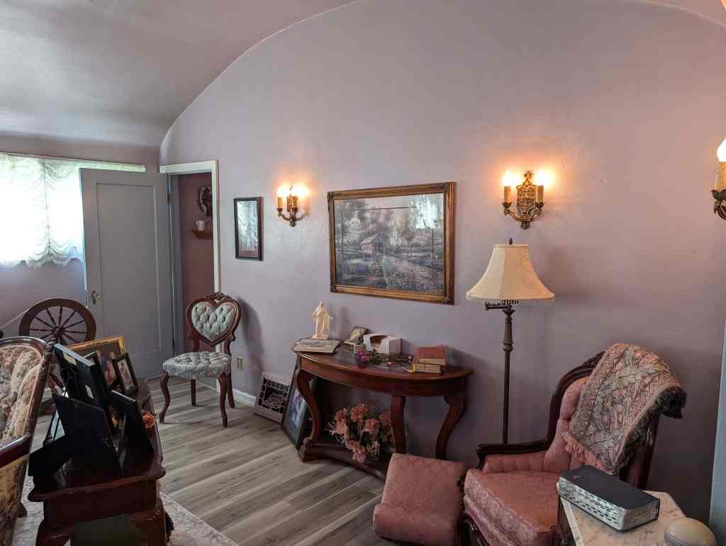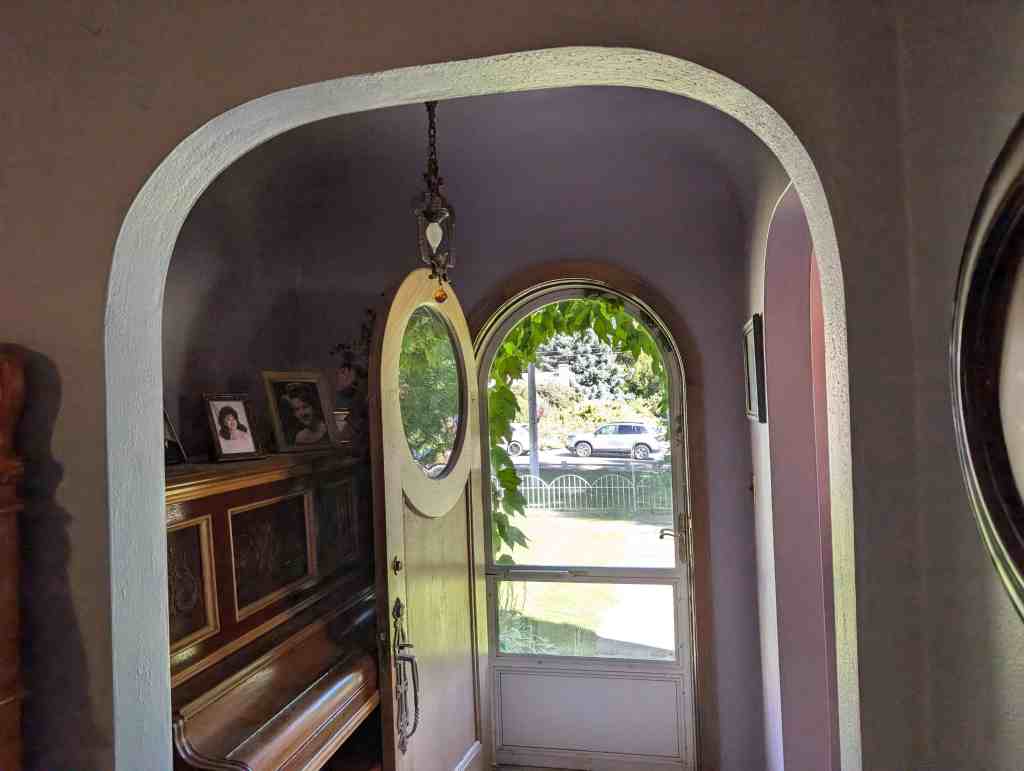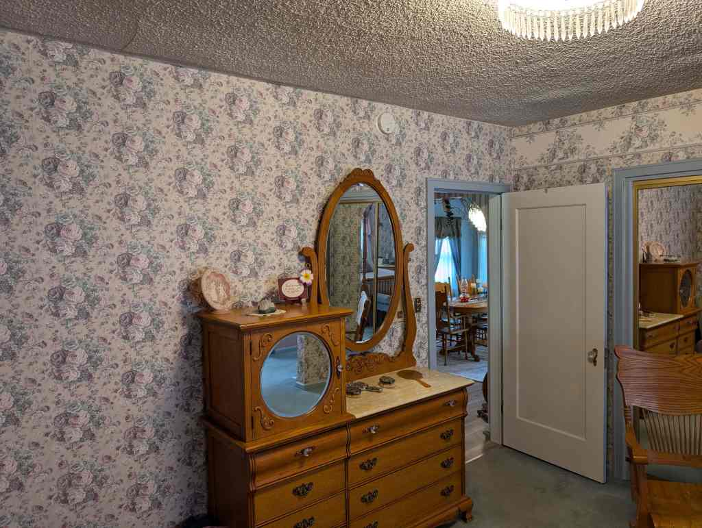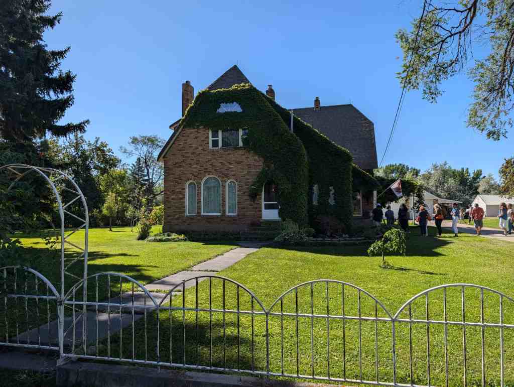 Andon Anderson brought his wife from Europe. He built this house in 1929 and added some special touches to it. There are many special features still in this home, two of which are the large walk-in cedar-lined wardrobes and the glass door knobs. Anton planted grapes and got in over his head. His house was sold at auction on the courthouse steps and Ether Nielsen bought it. He took out a lot of the grapes to build a barn and pasture. His wife kept a small grape patch, which their son later took out