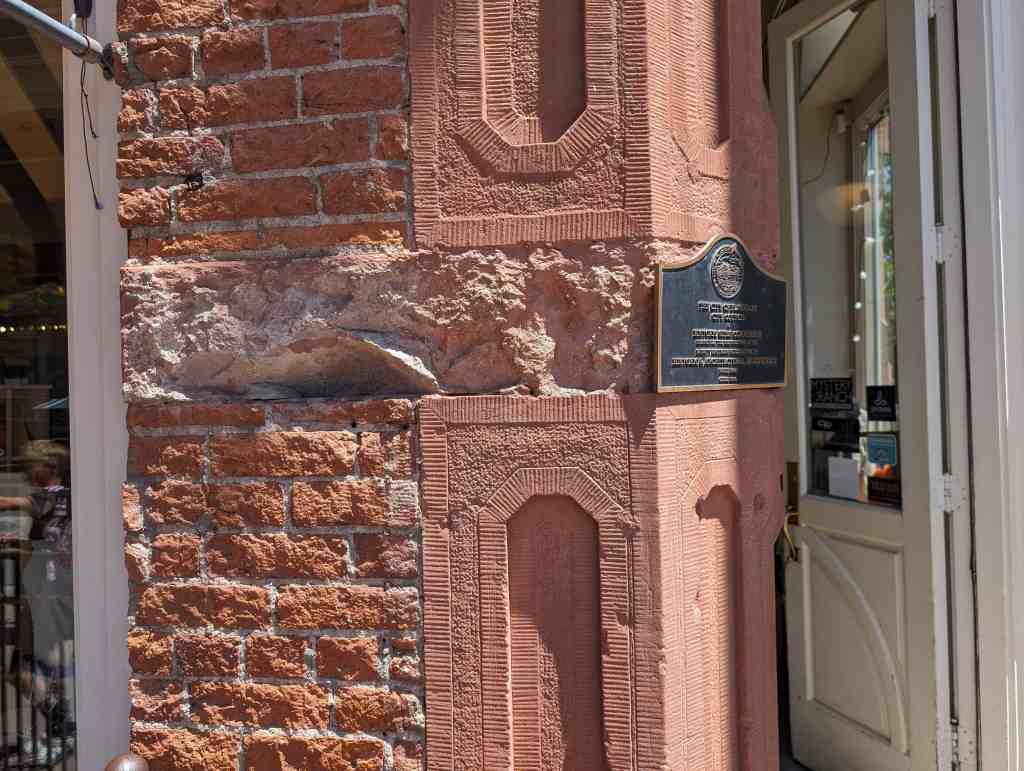 In 1957, during a modernizing campaign, a smooth stucco facing was placed over the original red sand- stone. Thirty years later, competition from shopping centers forced the closure of the grand old store. In 1990, the stucco facing was removed and the Aspen Avenue additions to the structure were cut away, saving the San Francisco Street side of the building and restoring its original appearance.