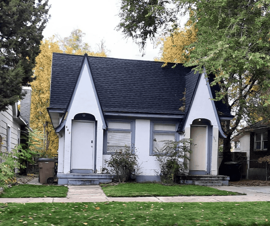 In addition to the many single-family dwellings that are associated with this period district’s history are several double houses (duplexes). These double houses are somewhat unique within streetcar suburbs such as Wells, as they represent higher density housing that was typically found in more urban settings. However, several streetcar suburbs around downtown Salt Lake City are known to have included a surprising number of such multi-family residences, including Wells and nearby Forest Dale. Roughly two dozen contributing double houses representing this period are present in the district. Most, such as the ca. 1912 property at 661 East Downington Avenue and the 1928 property at 604 East Kensington Avenue, exhibit elements of Period Revival style. Others, such as the 1924 residences at 665 East Downington Avenue, incorporated the highly popular Bungalow style.