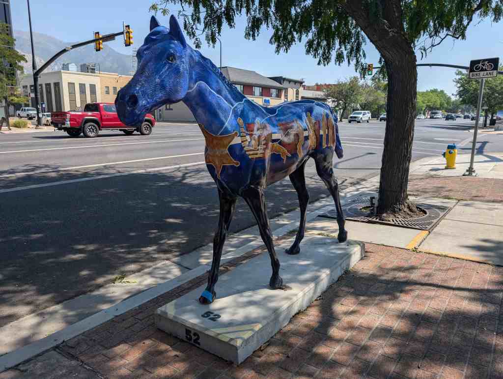 Part of Ogden’s Pioneer Days 75th Celebration was to put out 60+ fiberglass horse sculptures painted in different ways. This is part of that series, the rest can be see on this page.