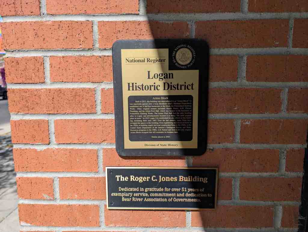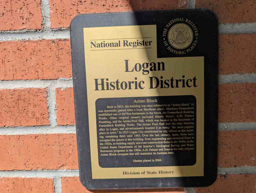 Built in 1913, this building was once referred to as “Arimo Block” (it was reportedly named after a local Shoshone chief). Martinus Fonnesbeck established one of the first businesses in the block, the Fonnesbeck Knitting Works. Other original tenants included Harris Music, A.H. Palmer Plumbing, and the Arimo Pool Hall, which was located in the basement of Fonnesbeck Knitting Works. The Arimo Pool Hall had the only bowling alley in Logan, and advertisements boasted it as being “the most popular place in town.” In 1915 Logan City established its city offices in this build- ing, remaining there until 1963. Over the last century, many firms have occupied the spaces in this building, from engineering and electrical firms in the 1920s, to building supply and road construction firms in the 1940s, to the United States Department of the Interior’s Geological Survey and Water Resources programs in the 1960s. A.H. Palmer and Sons is the only original Arimo Block occupant that still maintains its business here.