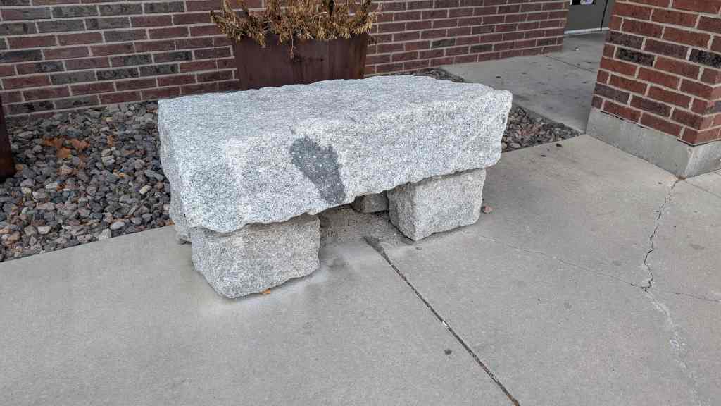 The large granite stone benches located on either side of the entrance to this building were made from the original foundation stones of Riverton’s Dome Church, which stood on this very location from 1908 to 1939. The stones were hauled by wagon from the Salt Lake Temple Quarry at the mouth of Little Cottonwood Canyon. It is estimated that each bench weighs approximately 2,500 pounds.