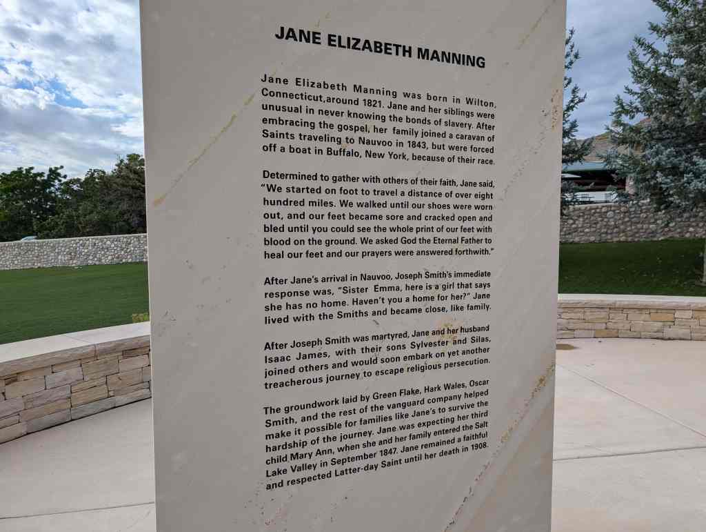The groundwork laid by Green Flake, Hark Wales, Oscar Smith, and the rest of the vanguard company helped make it possible for families like Jane’s to survive the hardship of the journey. Jane was expecting her third child Mary Ann, when she and her family entered the Salt Lake Valley in September 1847. Jane remained a faithful and respected Latter-day Saint until her death in 1908.