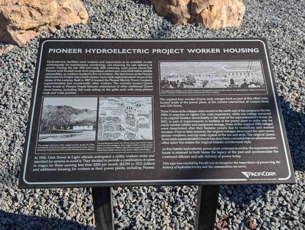 In 1920, Utah Power & Light officials anticipated a utility workers strike and searched for options to avoid it. They decided to provide a combination of raises in wages for those earning less than $200 per month ($3,700 in 2023 dollars) and additional housing for workers at their power plants, including Pioneer.
