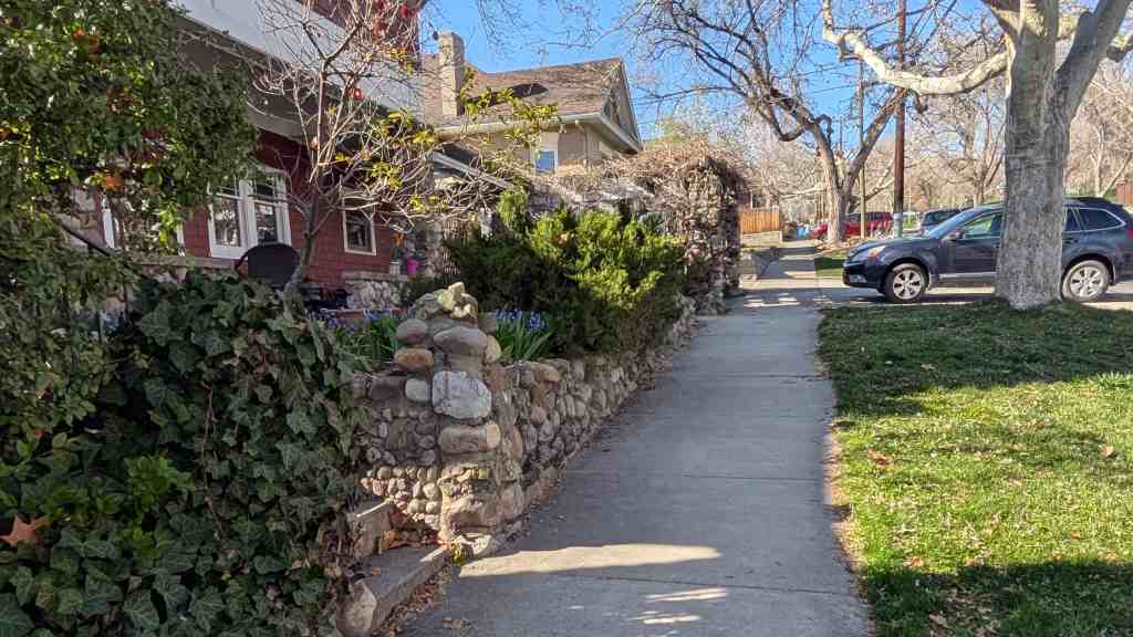 At one time, fences at the property line was mandatory in Salt Lake City and the continued presence of original fences or sympathetic replacements is an important part of the Avenues district . Good examples of intact wrought iron fences include 1006 Third Avenue and 1037 First Avenue. Remaining stone walls are now less common; 975 and 983 Third Avenue are examples of red and gray sandstone. Two of the best cobblestone walls are found at 203 Fourth Avenue and 307 M Street.