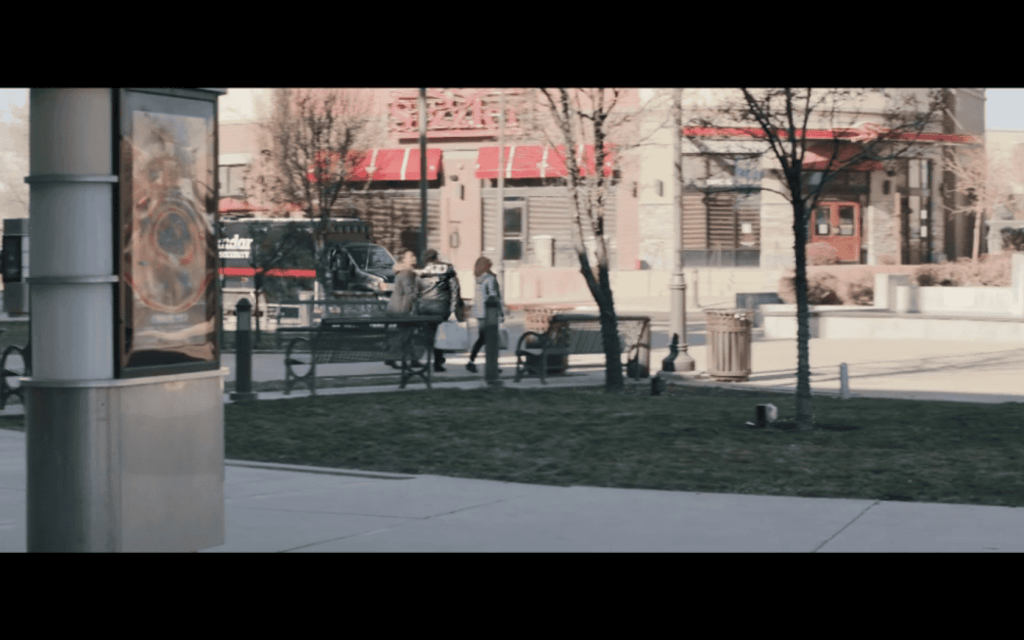It was filmed at the backside of the theater at 3761 West Parkway Plaza Drive in South Jordan, Utah