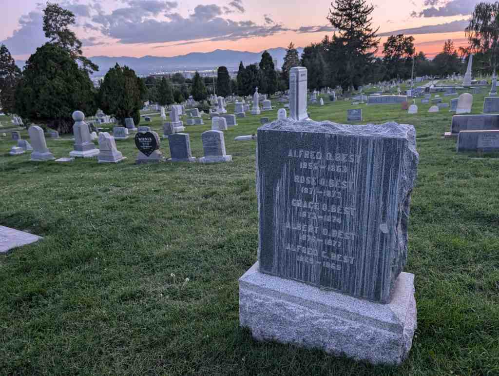 You can find his burial site at plot A-12-1 in the Salt Lake Cemetery in Salt Lake City, Utah