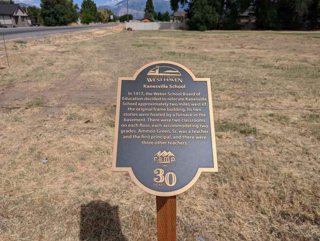 In 1917, the Weber School Board of Education decided to relocate Kanesville School approximately two miles west of the original frame building. It’s two stories were heated by a furnace in the basement. There were two classrooms on each floor, each accommodating two grades. Ammon Green, Sr. was a teacher and the first principal, and there were three other teachers.