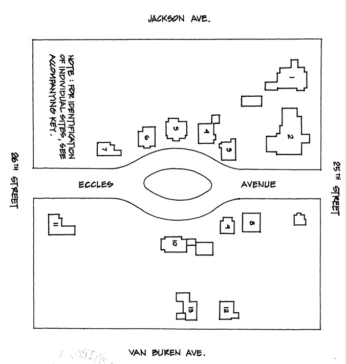 In 1910, construction began on the first homes located on Eccles Avenue. Although not all of the thirteen homes identified as part of the district belonged to members of the David Eccles family, seven did and the remaining six were originally owned by friends and business associates of David Eccles.