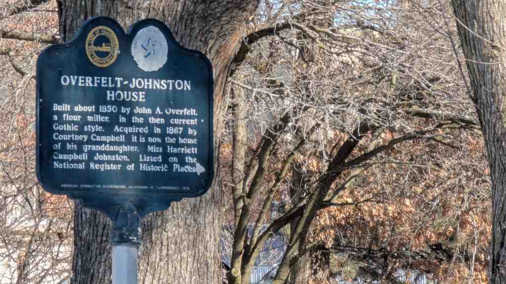 Built about 1850 by John A. Overfelt, a flour miller, in the then current Gothic style. Acquired in 1867 by Courtney Campbell, it is now the home of his granddaughter, Miss Harriett Campbell Johnston.