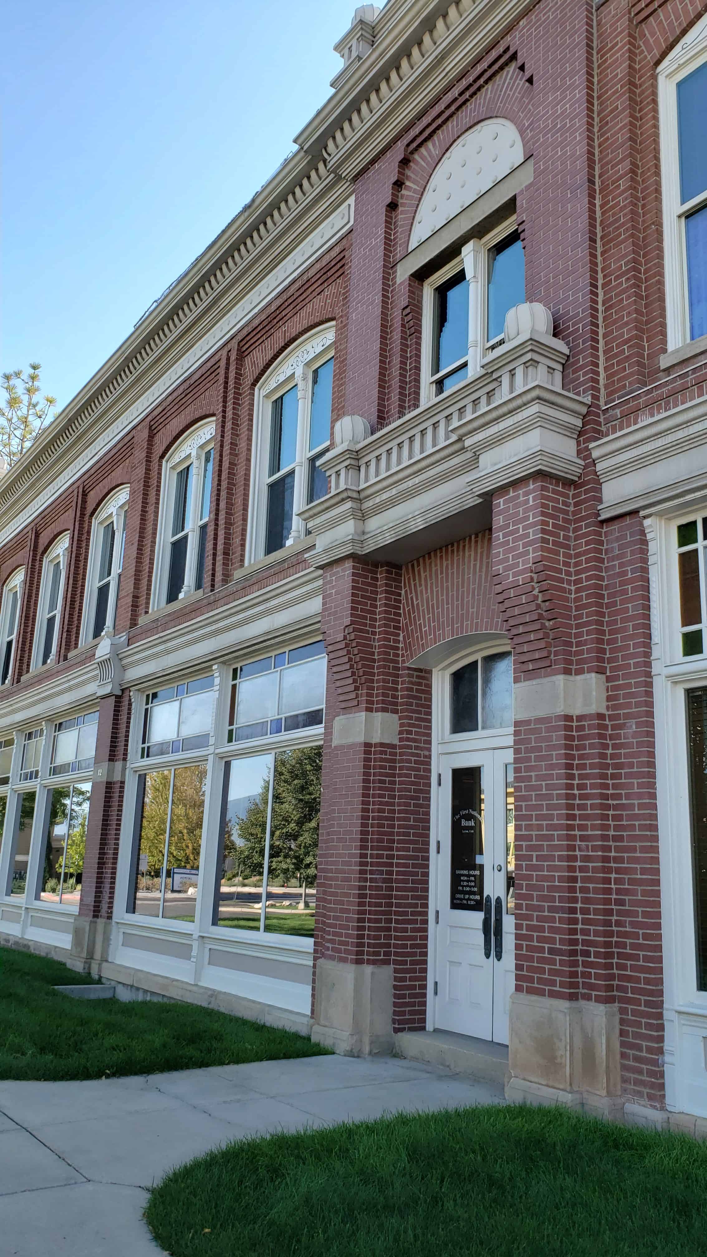 The First National Bank of Layton, built in phases between 1905 and 1945, is a one-part commercial block in the Victorian Eclectic style. The bank building is significant under Criteria A arid C for its association with the development of Layton, and for its association with Davis County’s most prominent and prolific architect at the turn of the century, William Allen. In 1905, the First National Bank was the third bank to be established in Davis County and during 2005 celebrated its centennial as the oldest continually operating business in Layton. For a century, the bank has been an integral part of the Layton City and Davis County economies. The bank building includes a 1915-1916 expansion, which provided office space for the Layton Sugar Company, the area’s largest employer at the time. During the 1940s, the bank building expanded again mainly due to the rise in population associated with the development of Hill Air Force Base (Hill Field). Between 1905 and 1916, the bank building was designed, constructed and expanded by Davis County’s most respected architect, William Allen. William Allen began his career as a brick mason and ended it as a contractor and self-taught architect. He was among the first architects licensed by the State of Utah, and the only licensed architect in Davis County for many years. Of Allen’s over one-hundred documented works, six are listed on the National Register of Historic Places and another is pending. The First National Bank of Layton is a contributing historic resource in Layton, Utah.