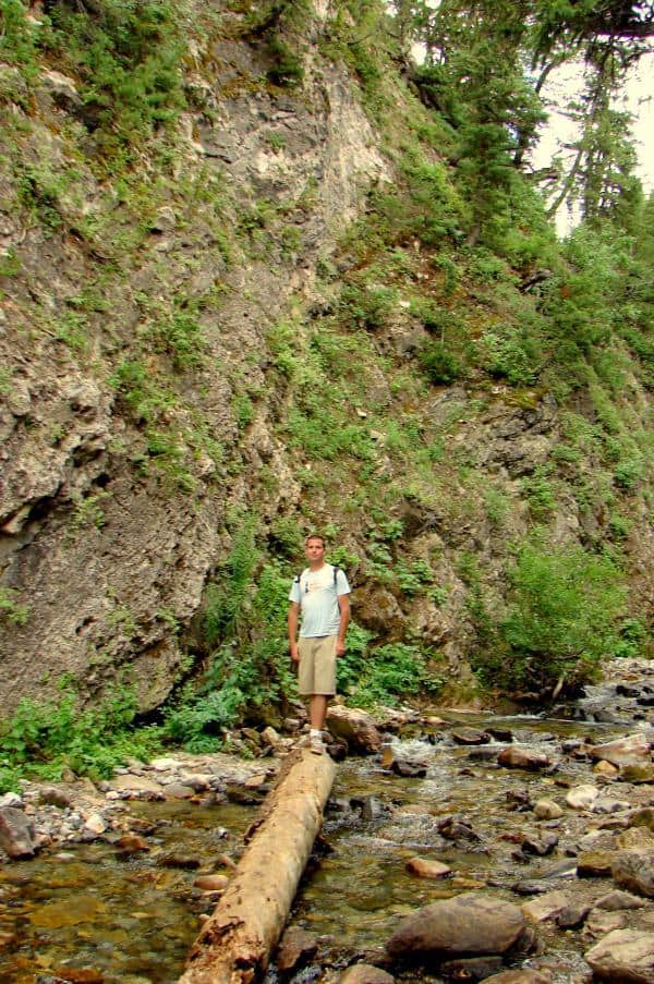 around a fire pit. The recreation area was almost totally rebuilt after a major flood destroyed the previous facility in the early 1980s. To the east of the picnic area and sand volleyball pit are the foundations of two operators’ houses, today almost covered with vegetation. These homes have been removed. Steep canyon walls rise behind the recreation area, to the south.