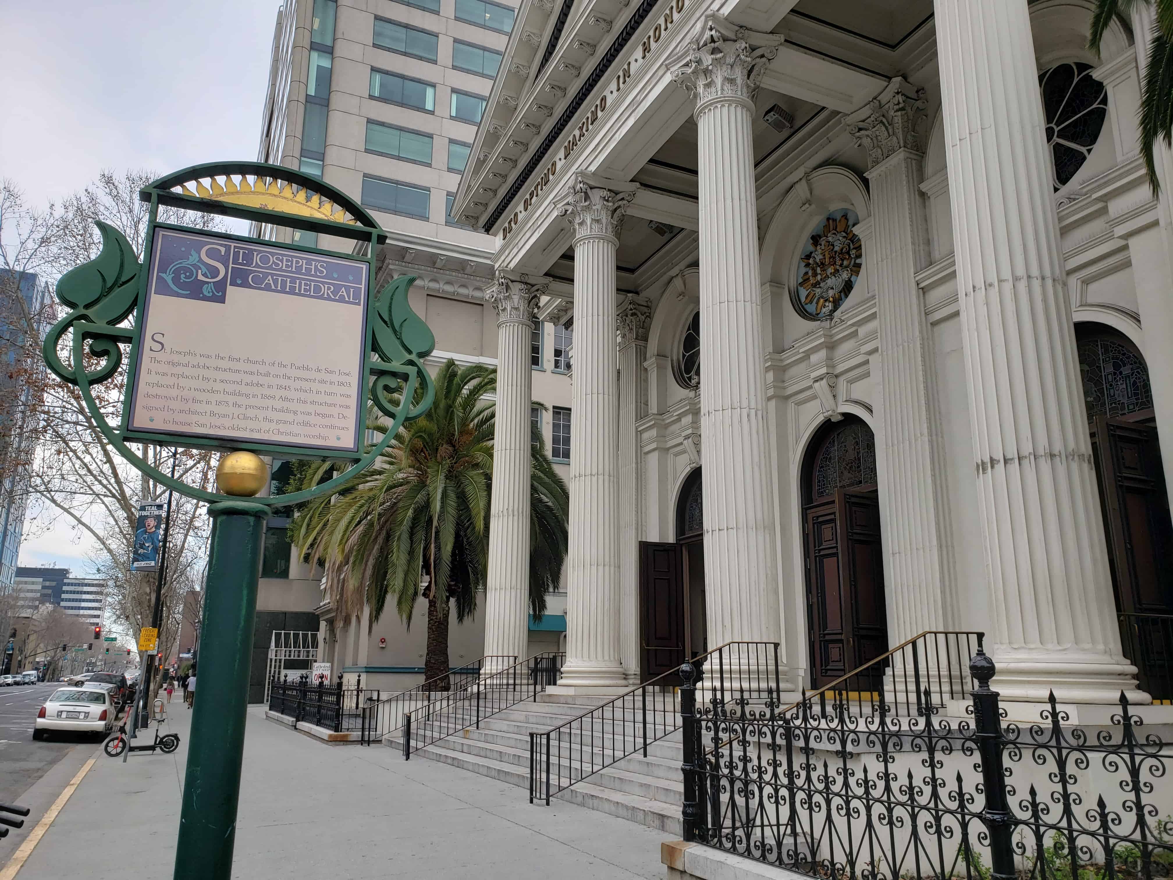 St. Joseph’s was the first church of the Pueblo de San Jose. The original adobe structure was built on the present site in 1803. It was replaced by a second adobe in 1845, which in turn was replaced by a wooden building in 1869. After this structure was destroyed by fire in 1875, the present building was begun. Designed by architect Bryan J. Clinch, this grand edifice continues to house San Jose’s oldest seat of Christian worship.