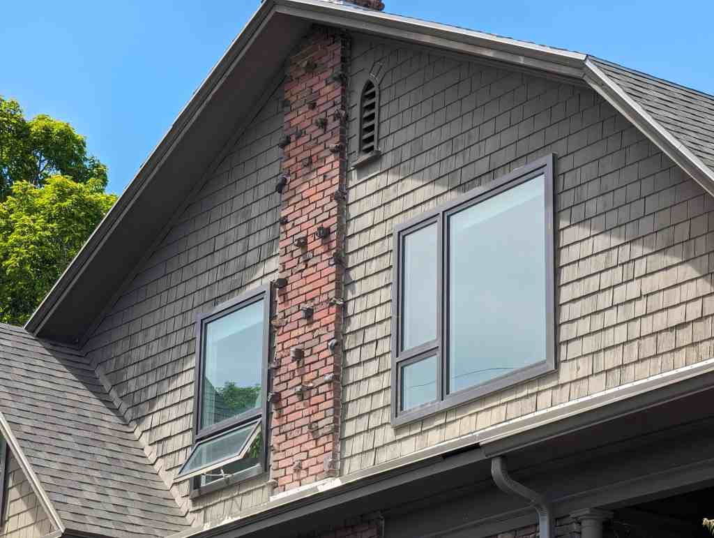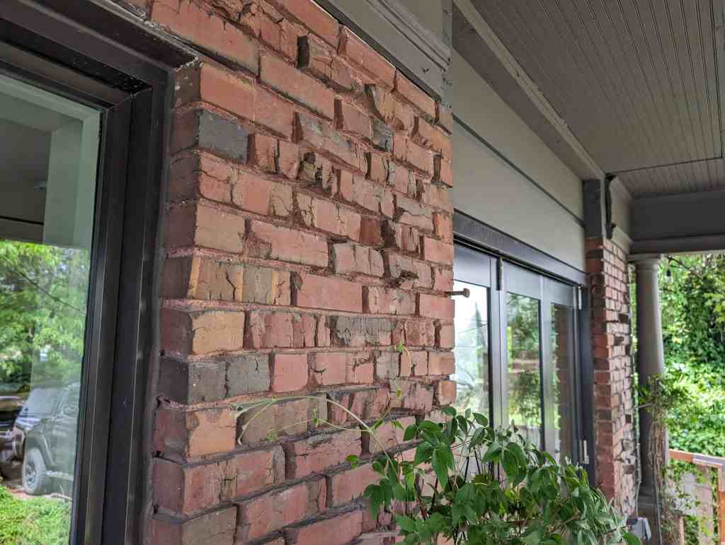There are many interesting rocks protruding from the brick faces of the building, a resident told me that when they refaced the building and added those they had a problem with people rock climbing on the building.