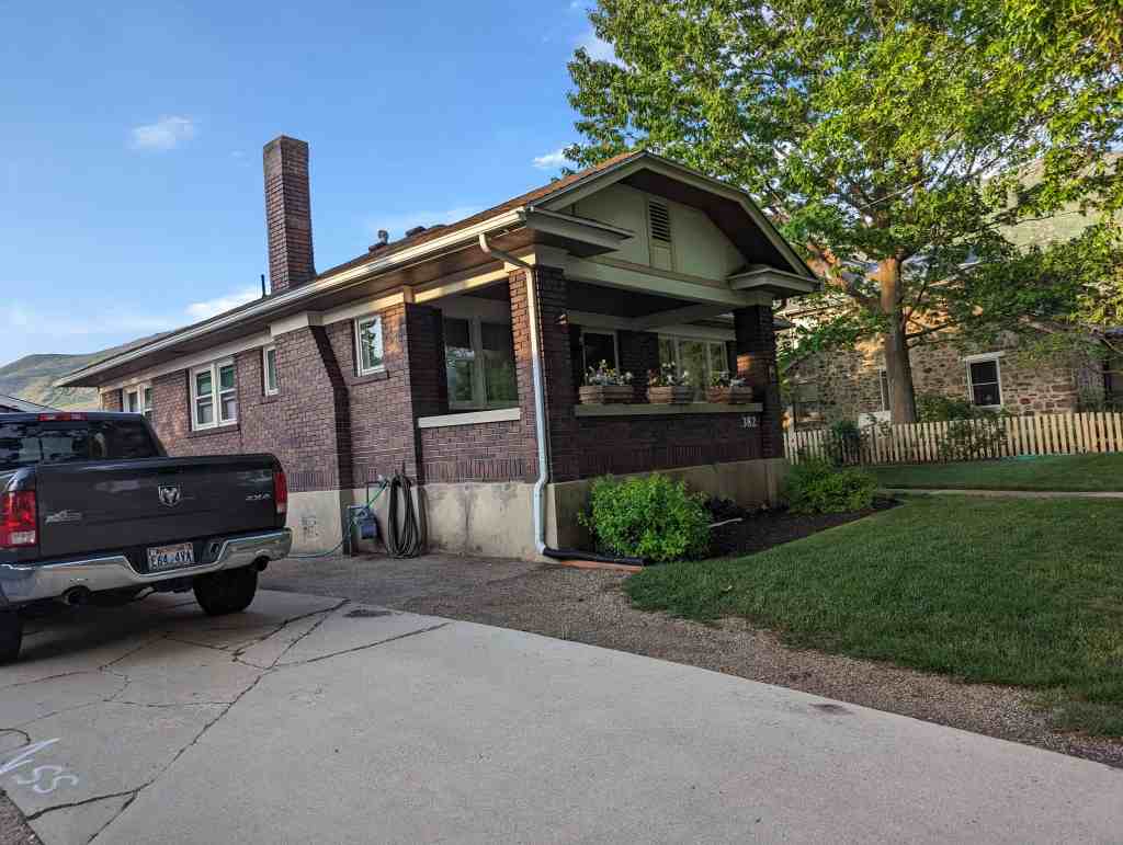Built of native oolitic limestone, the home is in nearly original condition today and documents craftsmanship and design typical of early vernacular masonry architecture in Manti.