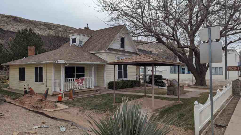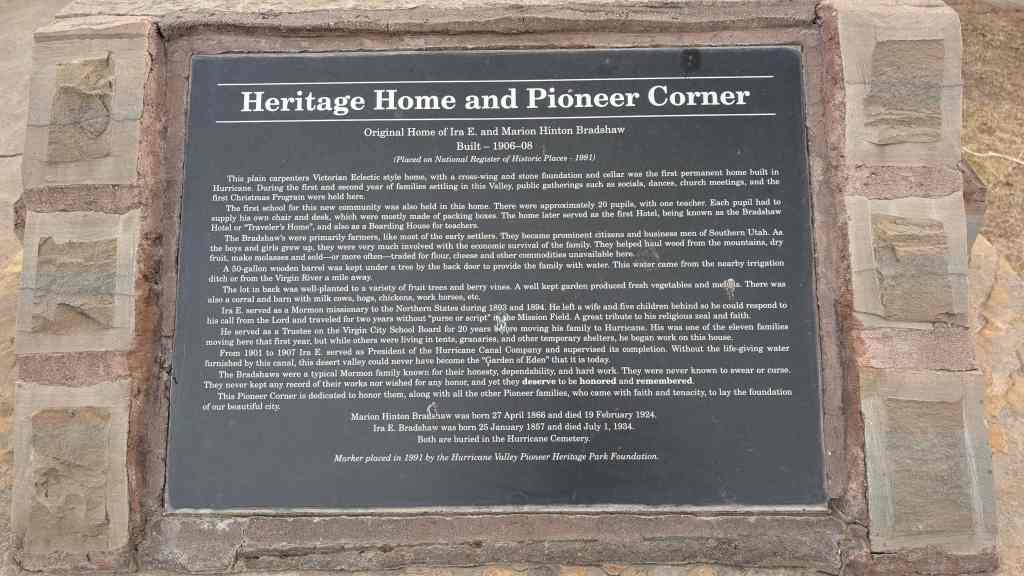The construction of the Hurricane Canal is one of early Utah’s proudest stories of pioneer determination. Built completely by hand, the 7.5 mile canal clings to the sheer walls of the Virgin River Canyon before leaving to follow the Hurricane Fault and then encircle the flat farmlands of the Hurricane Bench. The canal took eleven years and $60,000 to build, most of the capital being represented by the labor of men who paid for their shares in the canal company by working on the canal during the winter months. The completed canal brought water to 2000 acres of parched bench land and created the now successful village of Hurricane, Utah.