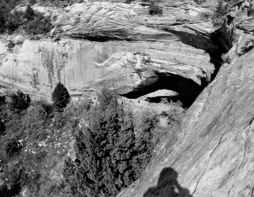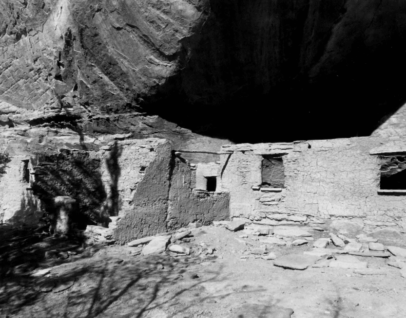 Cottonwood Canyon Cliff Dwelling (42Ka1504) was first recorded by Neil M. Judd in 1919 (see Judd 1926}. Judd did not excavate any of the site, although he did note some deterioration due to weather and cattle but the impact was- apparently small. Judd labelled this cliff dwelling “Cave 6,” one of more than twenty which he noted in Cottonwood, Indian and Farm Canyons. In October 1973, Michael Bunker of the Bureau of Land Management-Kanab recorded the site for the Kanab District Archeological site inventory, There have been no subsequent archeological activities at this site. However, during July 1966 Utah State University contracted with the BLM to stabilize portions of the site. Presently additional stabilization is being considered.