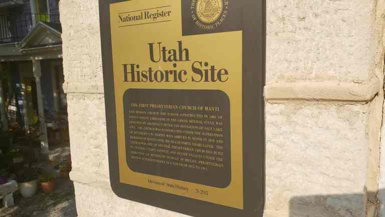 From the national register’s nomination form: The First Presbyterian Church of Manti is significant because it documents the important role of a non-Mormon religious organization in stimulating improved educational opportunities in Utah and because the circumstances surrounding its being brought into existence place aspects of Mormon settlement into a new perspective. The building is a distinguished addition to the built environment of Manti.