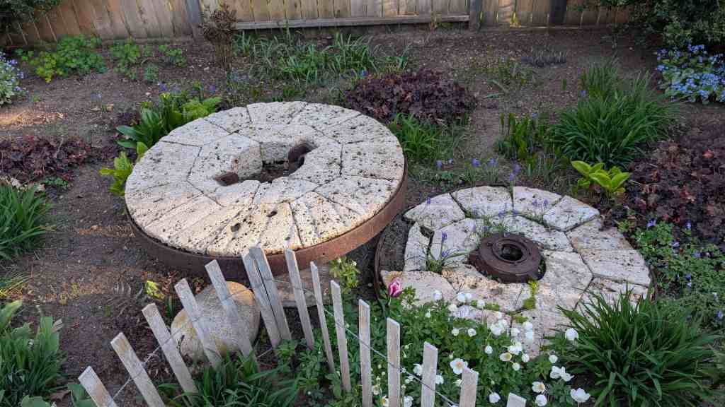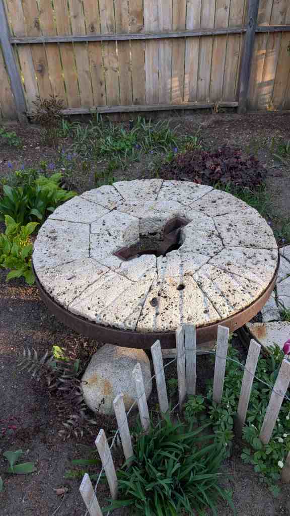 I’m hoping the collective knowledge of the internet can help with this, I had a lady call me up about these mill stones in her back yard – two are complete and I dug into this pile of stones near the fence and started finding pieces of others. She’s wondering where they might have come from. One person told her they came from somewhere in Utah named after a President, maybe Fillmore. She in a home built in 1960 in Sandy, Utah and the stones along with the stone work all over the house is from the original owner who already gave away some of the millstones.