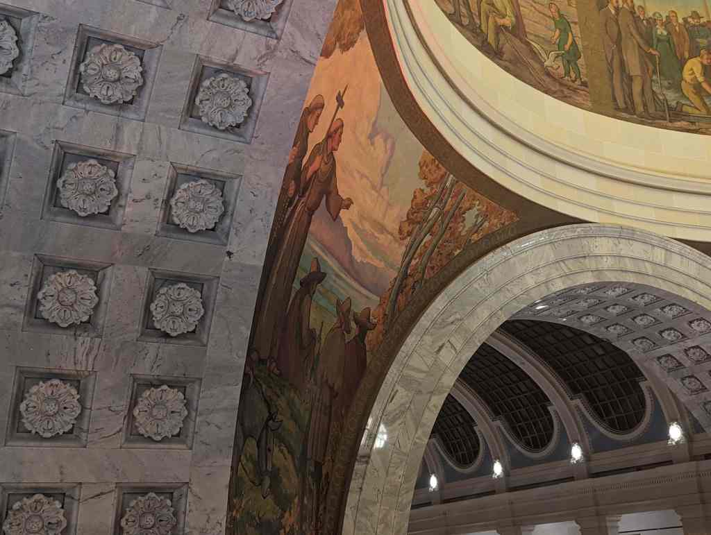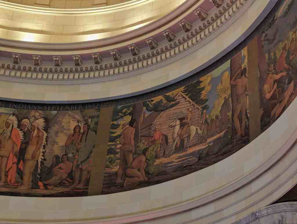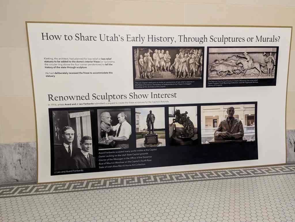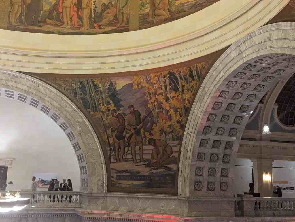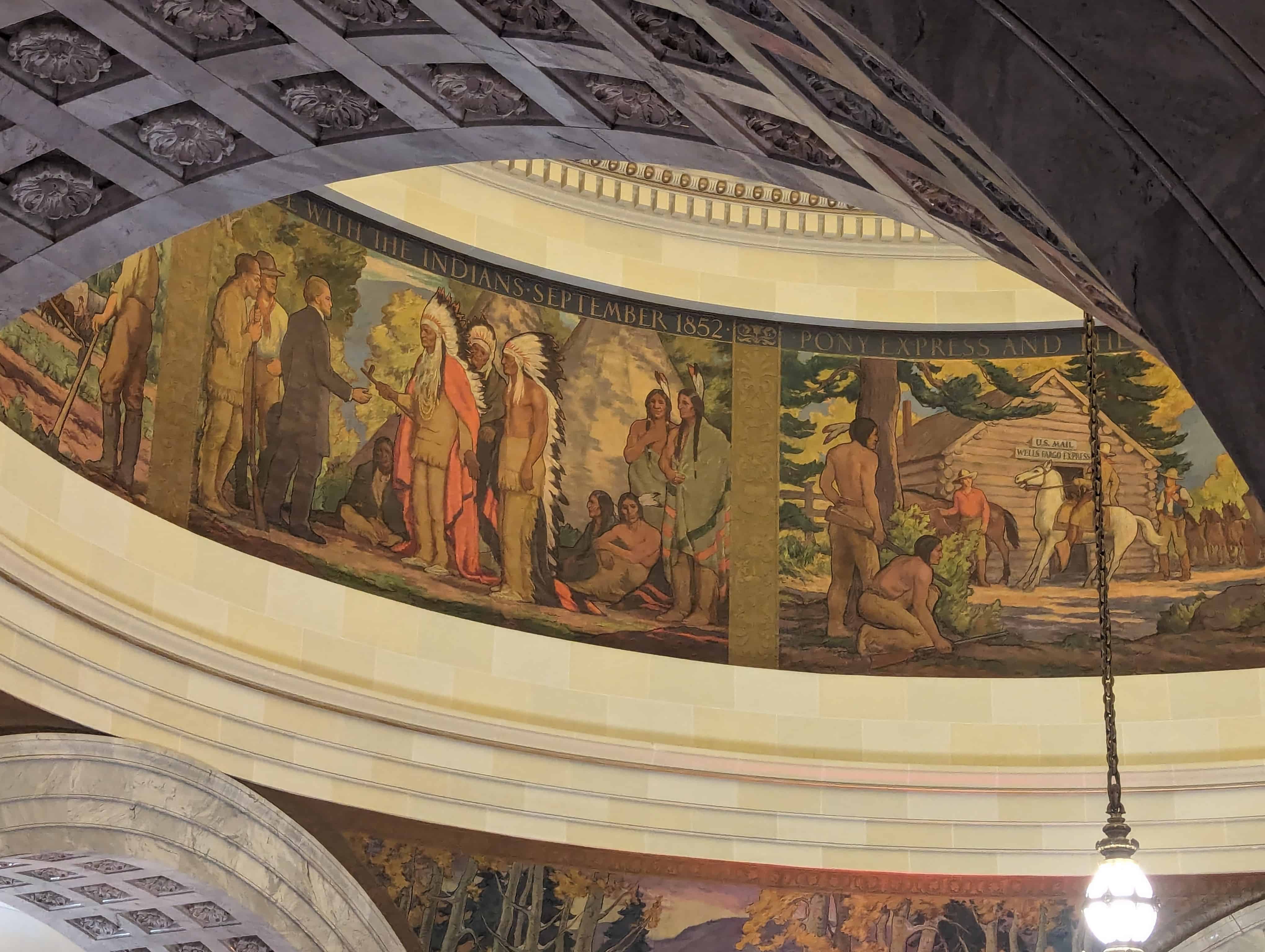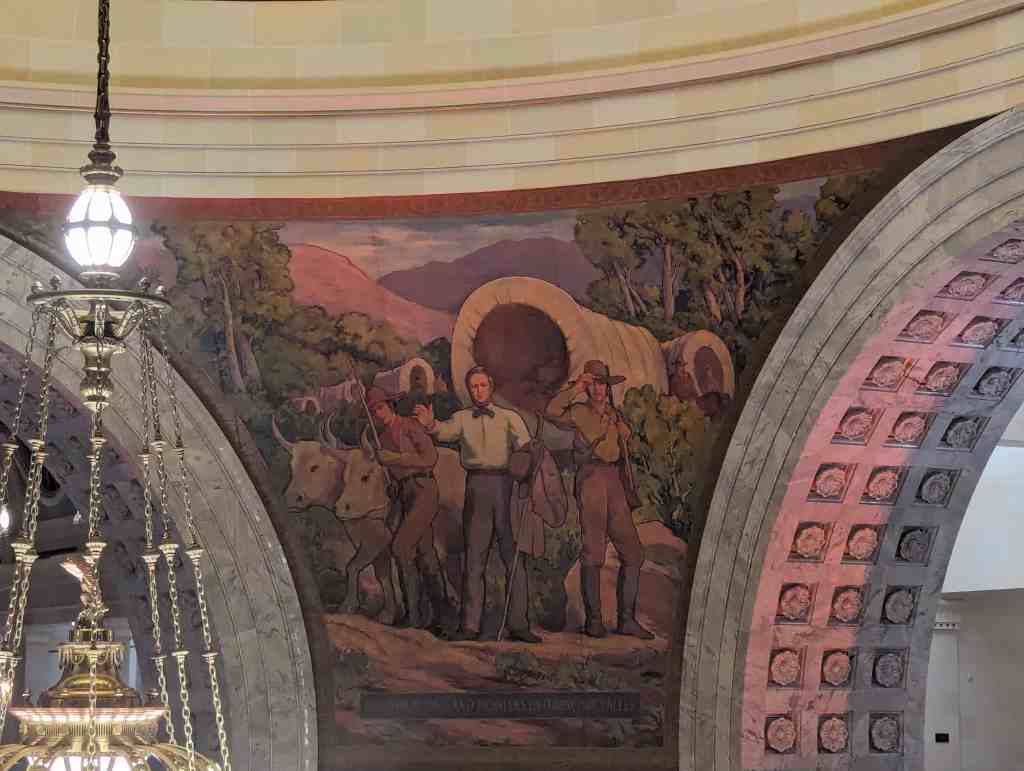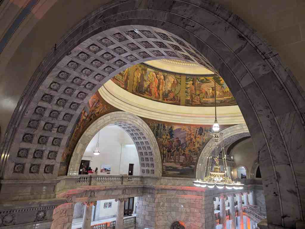 “The work which you see in the dome of this building depicts the various events leading up to the settlement of Utah and further events in its development. I hope the sons and daughters of all of you will come to see these paintings and join in the spirit of the pioneer. I take the greatest pleasure in accepting this splendid work as a permanent addition to the beauty of one of the finest capitol buildings in the United States.” – Salt Lake Telegram, March 11, 1935