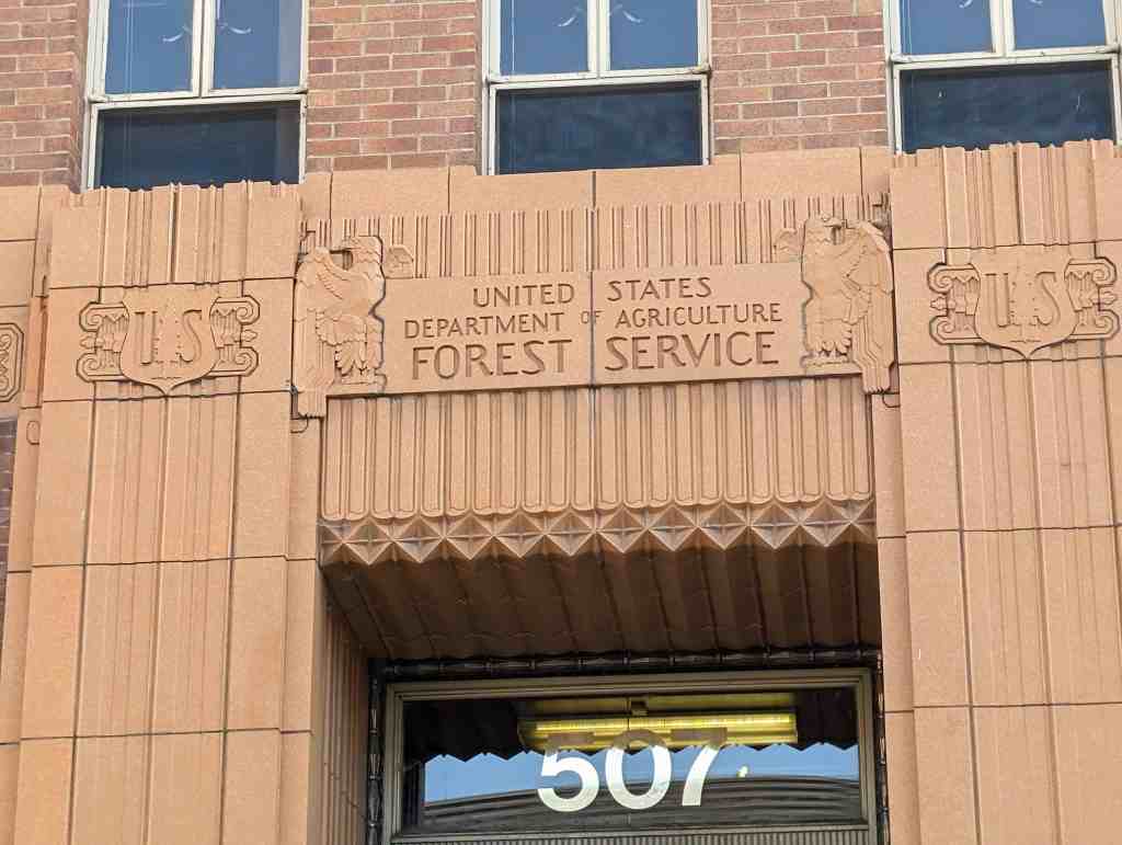 also: An important development in 1930s Ogden was that of federal aid. With the onslaught of depression in the United States, beginning in 1929, the federal government eventually sought to create work and construction projects designed to help the nation’s rising unemployed. In the early 1930s, Congress appropriated $250,000,000 for construction projects, one of which was the U.S. Forestry Building located in the district at 507 25th Street. In 1932 the architectural firm Hodgson and McClenahan was commissioned to design the structure, and by 1933 the construction of the building was underway. The building is done in the Art Deco style and is one of the three most significant Art Deco style buildings in the state, with the other two being the Ogden Municipal Building and Ogden High School.