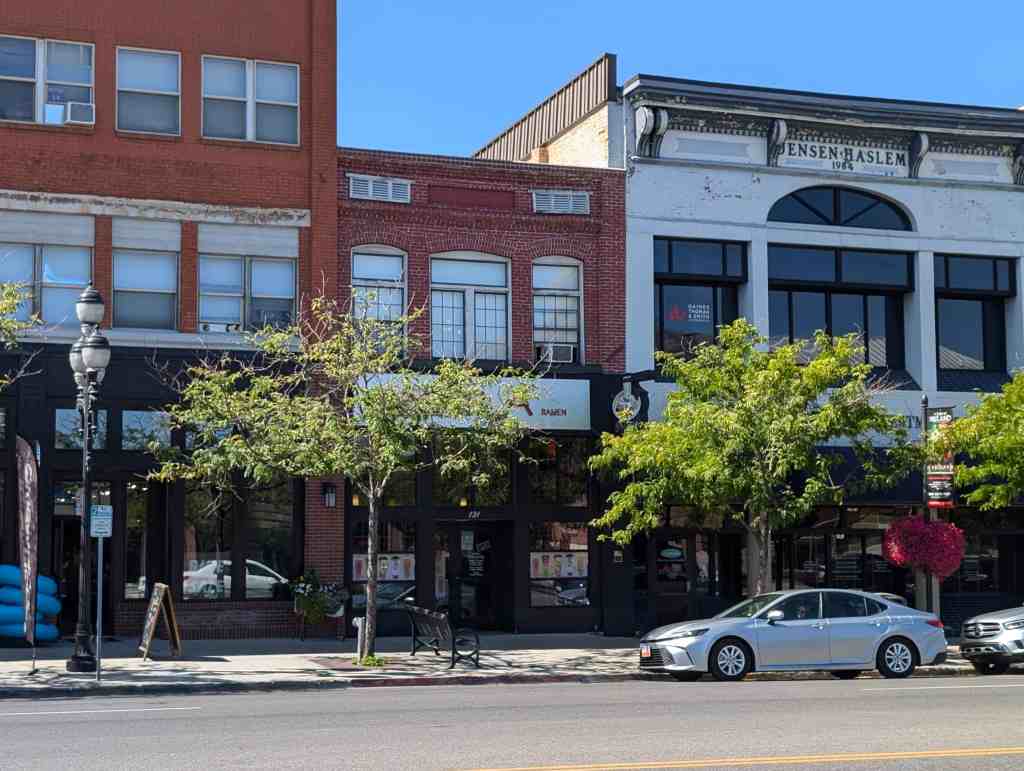 Built in 1913, this building was once referred to as “Arimo Block” (it was reportedly named after a local Shoshone chief). Martinus Fonnesbeck established one of the first businesses in the block, the Fonnesbeck Knitting Works. Other original tenants included Harris Music, A.H. Palmer Plumbing, and the Arimo Pool Hall, which was located in the basement of Fonnesbeck Knitting Works. The Arimo Pool Hall had the only bowling alley in Logan, and advertisements boasted it as being “the most popular place in town.” In 1915 Logan City established its city offices in this build- ing, remaining there until 1963. Over the last century, many firms have occupied the spaces in this building, from engineering and electrical firms in the 1920s, to building supply and road construction firms in the 1940s, to the United States Department of the Interior’s Geological Survey and Water Resources programs in the 1960s. A.H. Palmer and Sons is the only original Arimo Block occupant that still maintains its business here.