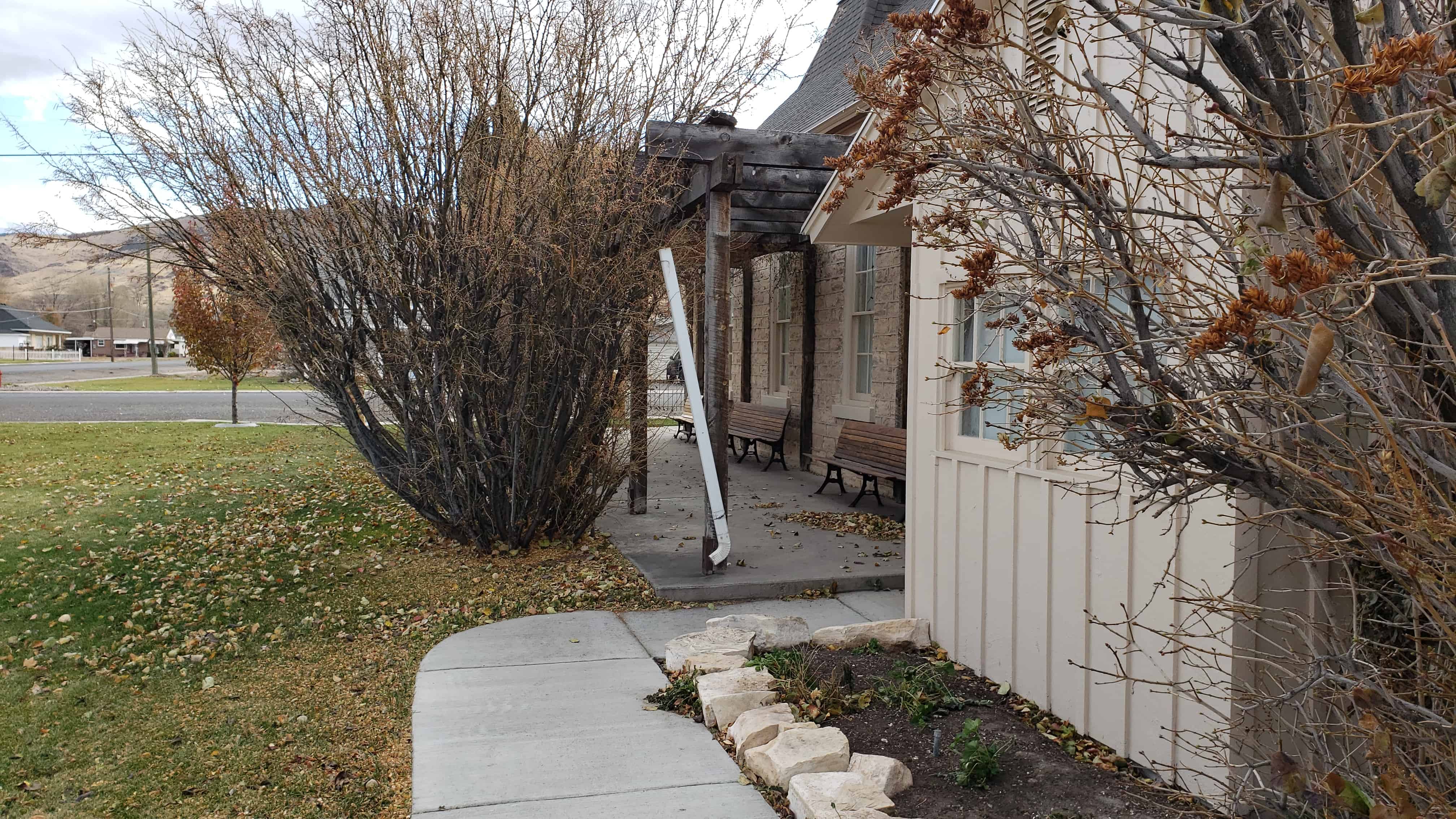 Erected in 1884 as a memorial to Helen Rutgers Crosby of New York City, this church and school was one of several Presbyterian Churches built in central Utah’s Sanpete and Sevier valleys under the direction of Reverend Duncan McMillan, Presbyterian Mission Superintendent in Utah from 1875 to 1917. The chapel has been renovated by Mr. and Mrs. Thomas W. Carter, in memory of Mrs. Carter’s mother, Mrs. Florence Mathew Gordon.