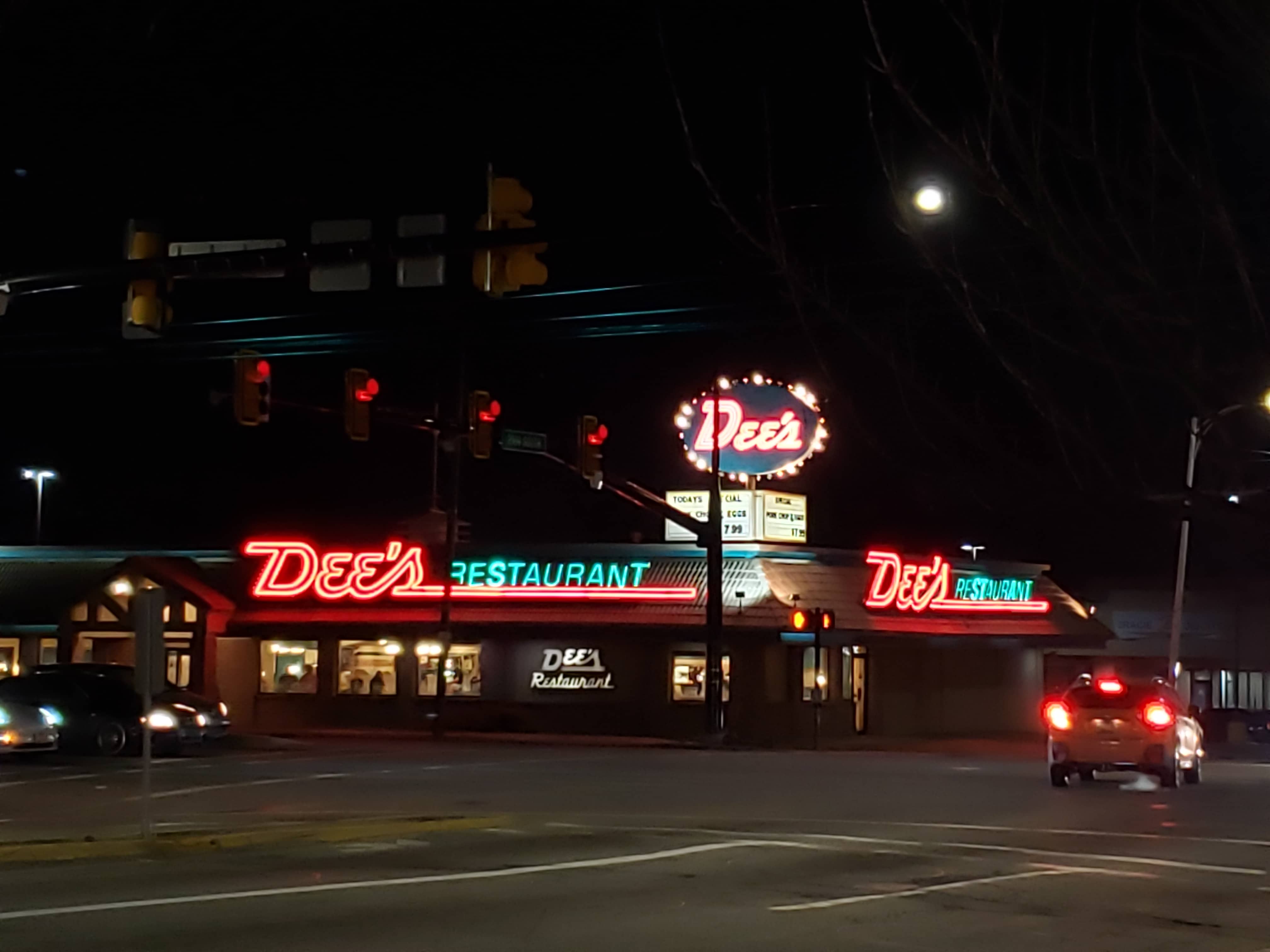 Dee’s was known for the iconic clown on the buildings, I found these two photos (below) online here and here.