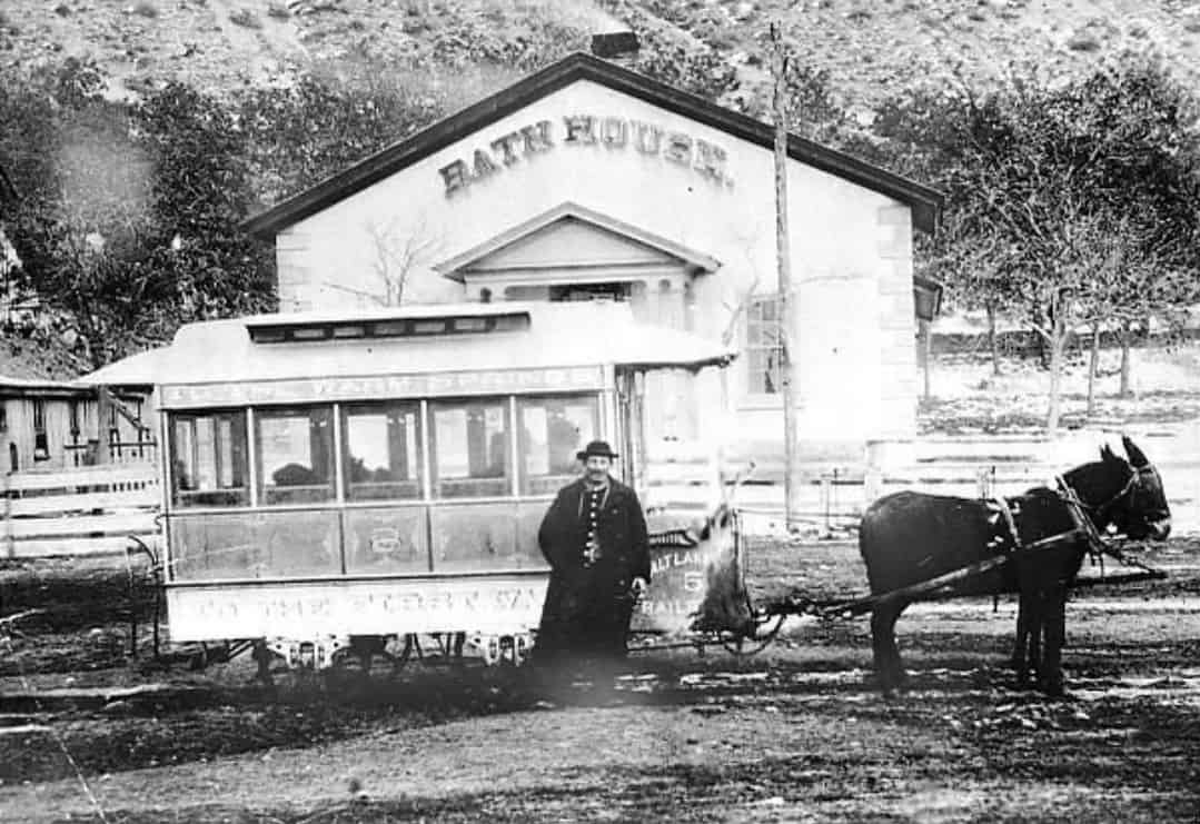 In 1872 the city’s title to the warm springs was secured and in that year the Salt Lake street railroad was established and its first one and one-half miles of track for the mule-drawn cars were laid from Temple Square to Warm Springs. The plunge and private baths were re-fitted and re-decorated and they were “freely patronized by Salt Lake City residents as well as by all visitors.”