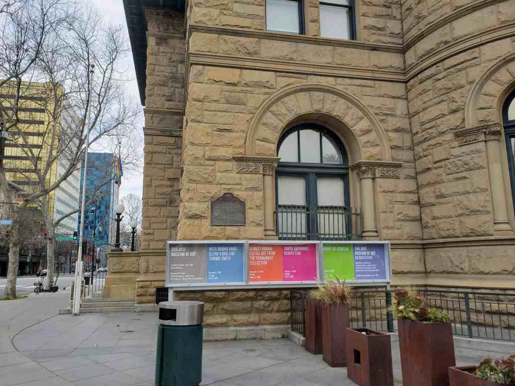 Plaque placed by the State Department of Parks and Recreation in cooperation with the Fine Arts Gallery Association, San Jose Historic Lankmarks Commission, and the San Jose Historical Museum.