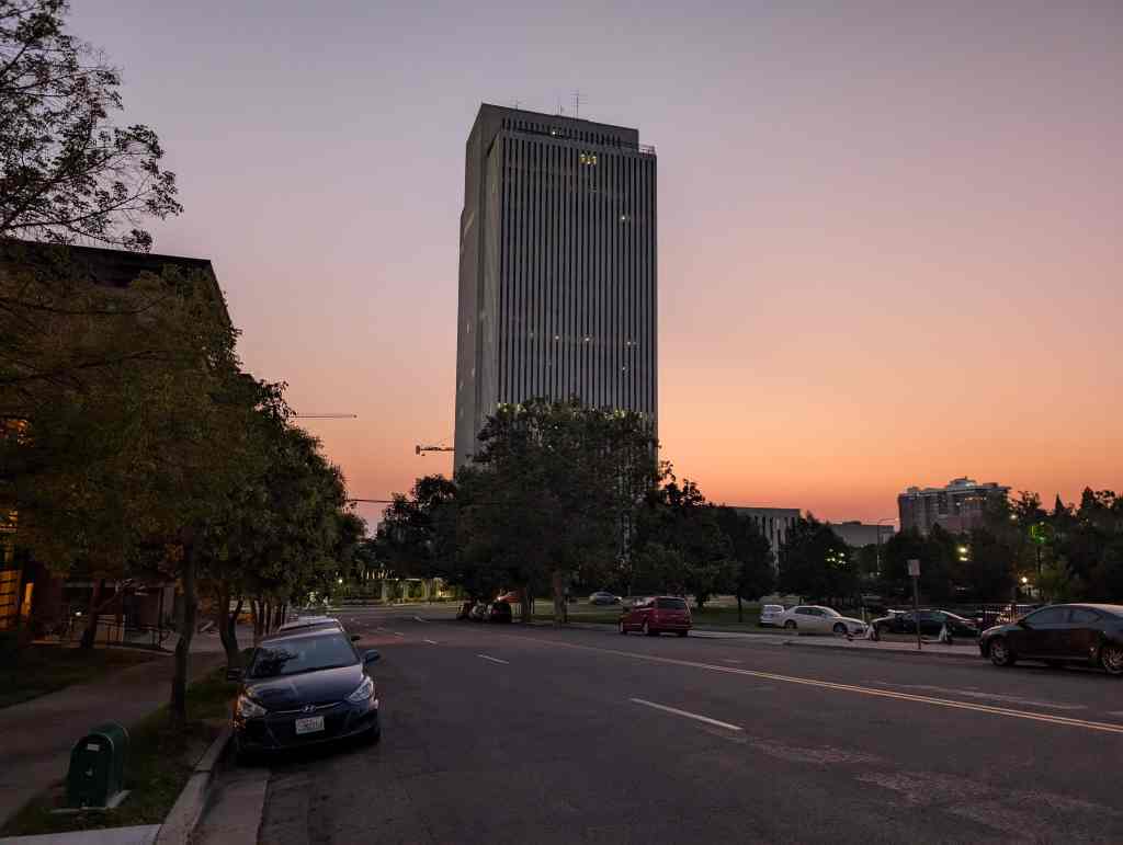 The ten-story building has a concrete and steel structure and is covered with white glazed terra cotta and brick. Various additions and remodelings have occurred throughout the years, including a substantial expansion to the north and modifications to the roof-top dining facilities.