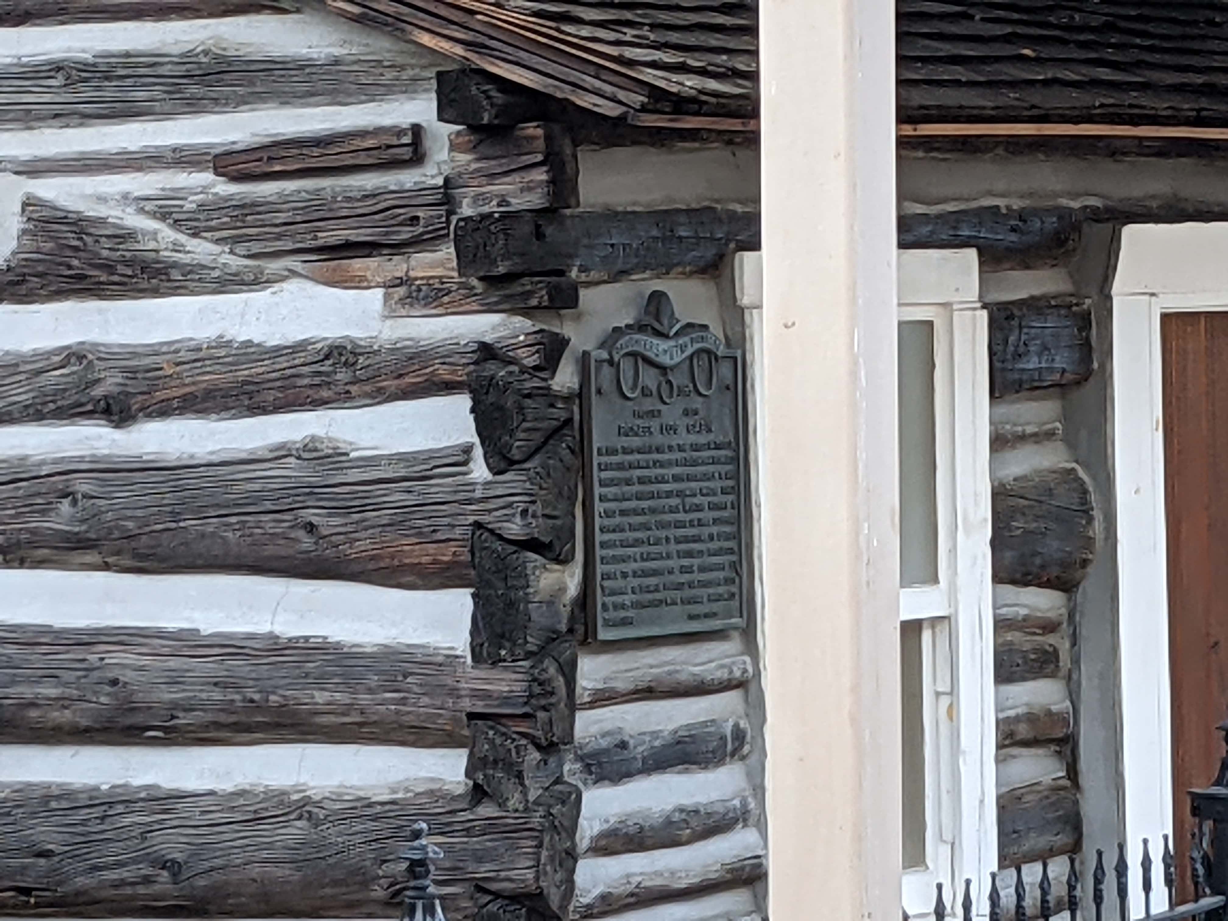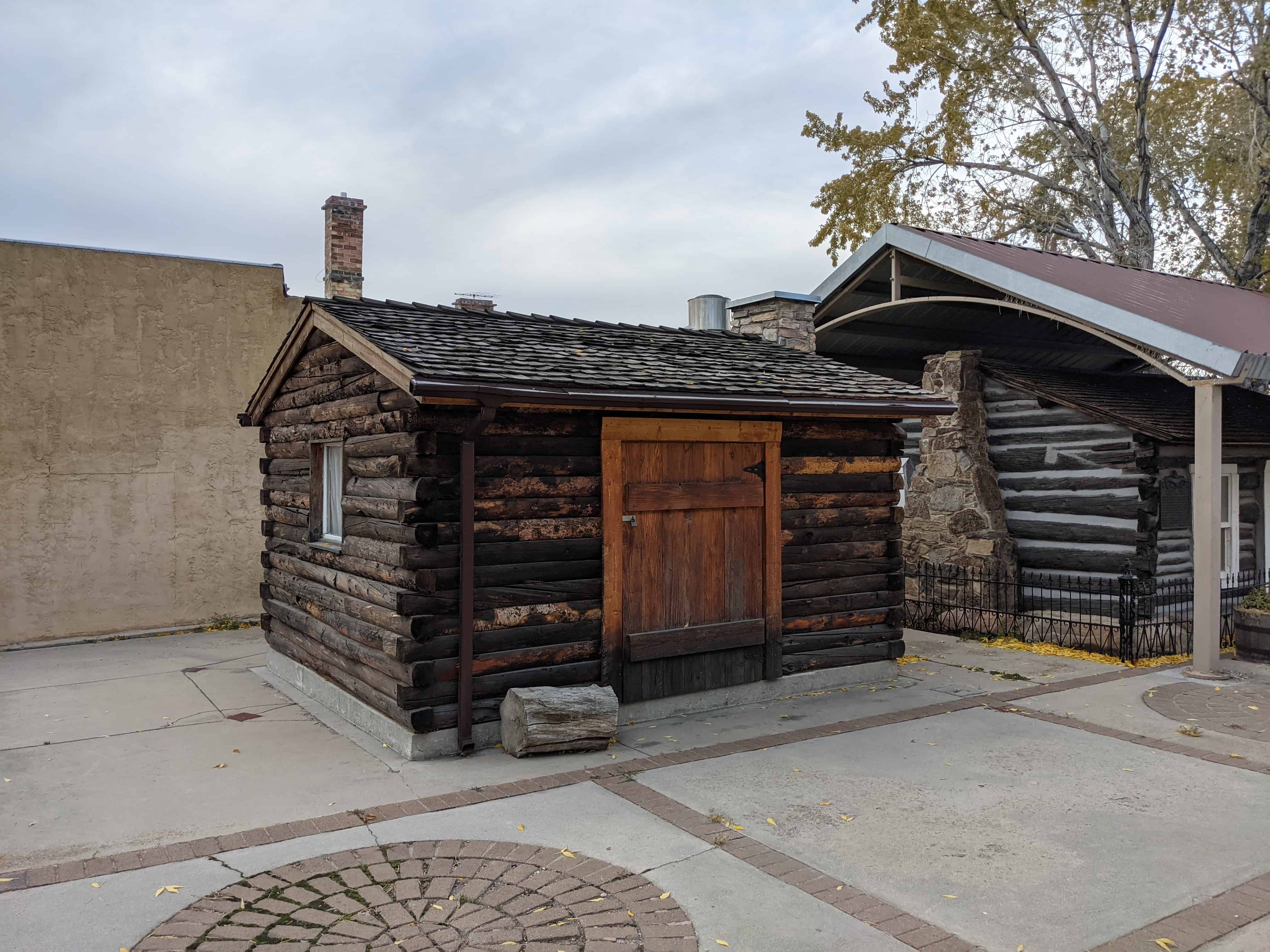 In 1855 this cabin, one of the first in Tooele, was begun on Main Street by Zachariah Edwards. Finished for their home 1856 by Andrew and Ann Gowans, and Hugh and Betsy Gowans where they lived together for a few months. Henry and Georgina Dolling lived here in 1869. Several other families made it their home. It later sheltered a number of business projects. Given to Daughters of Utah Pioneers by Barbara G. Bowen. Placed on present site in 1975, furnished with original homemade furniture.