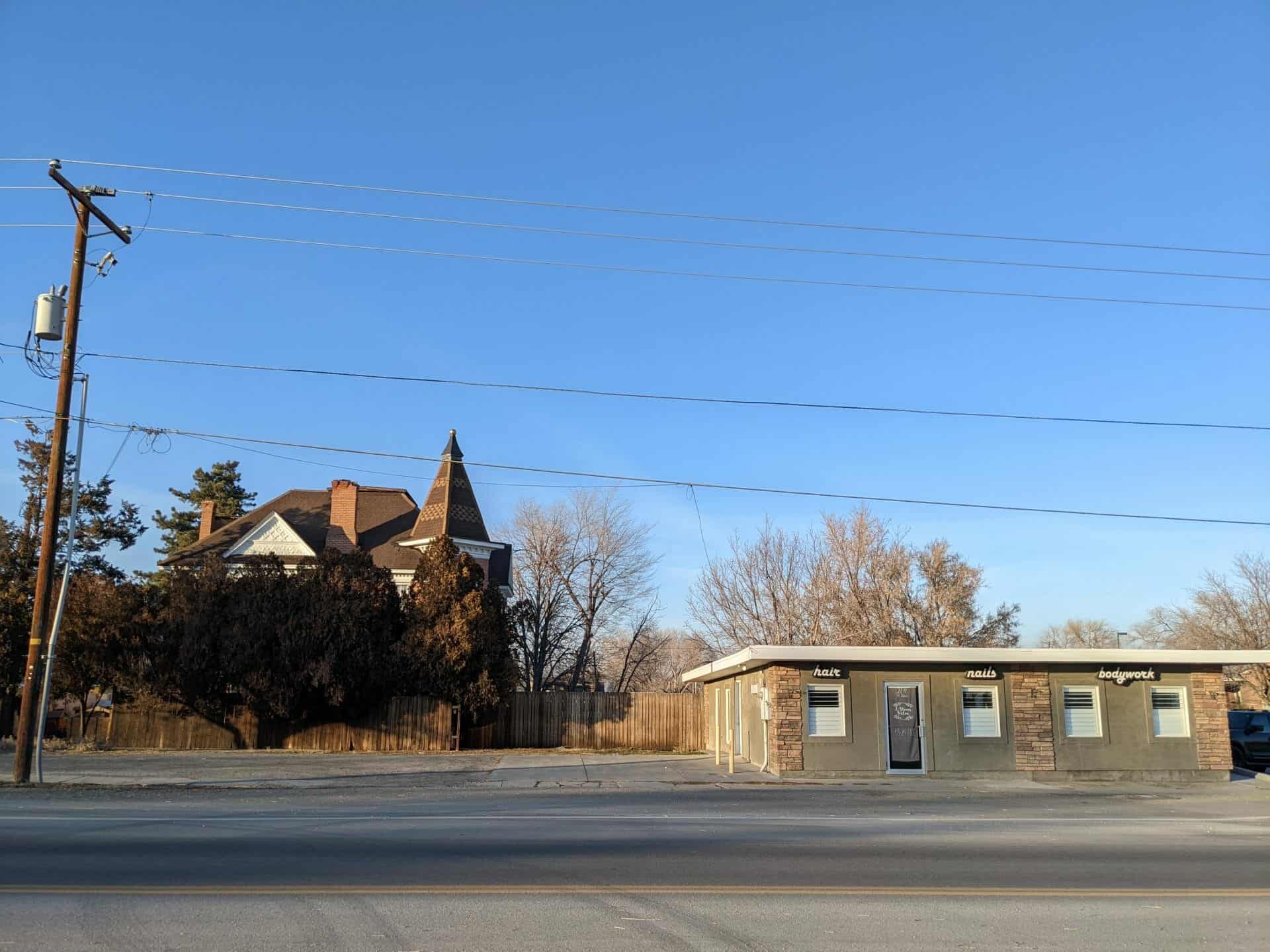 Layton’s historic business district is clustered near the intersection of Gentile Street and Main Street, which for many years paralleled the track of the original Utah Central Railroad (the tracks were removed in 1953). The Layton business district was also serviced by the Oregon Short Line (later Union Pacific, 1912-present) on the west side of town and the Bamberger Electric Railway (1906-1952, later obliterated by Interstate 15) east of the commercial district. At the beginning of the twentieth century, Layton’s business district included two general stores, a meat market, saloon, coal dealer, blacksmith shop, barber shop, hotel, and the Layton Milling and Elevator Company, which in 1903 shipped more flour than any other Utah mill. Through the first half of the twentieth century, the economy was predominantly agricultural. The most important cash crops were alfalfa, grain, onions, and potatoes. A cannery was built to process tomatoes and peas, and a factory was established in 1915 to process sugar beets. The business district was the support and shipping center for products of Layton fanners.