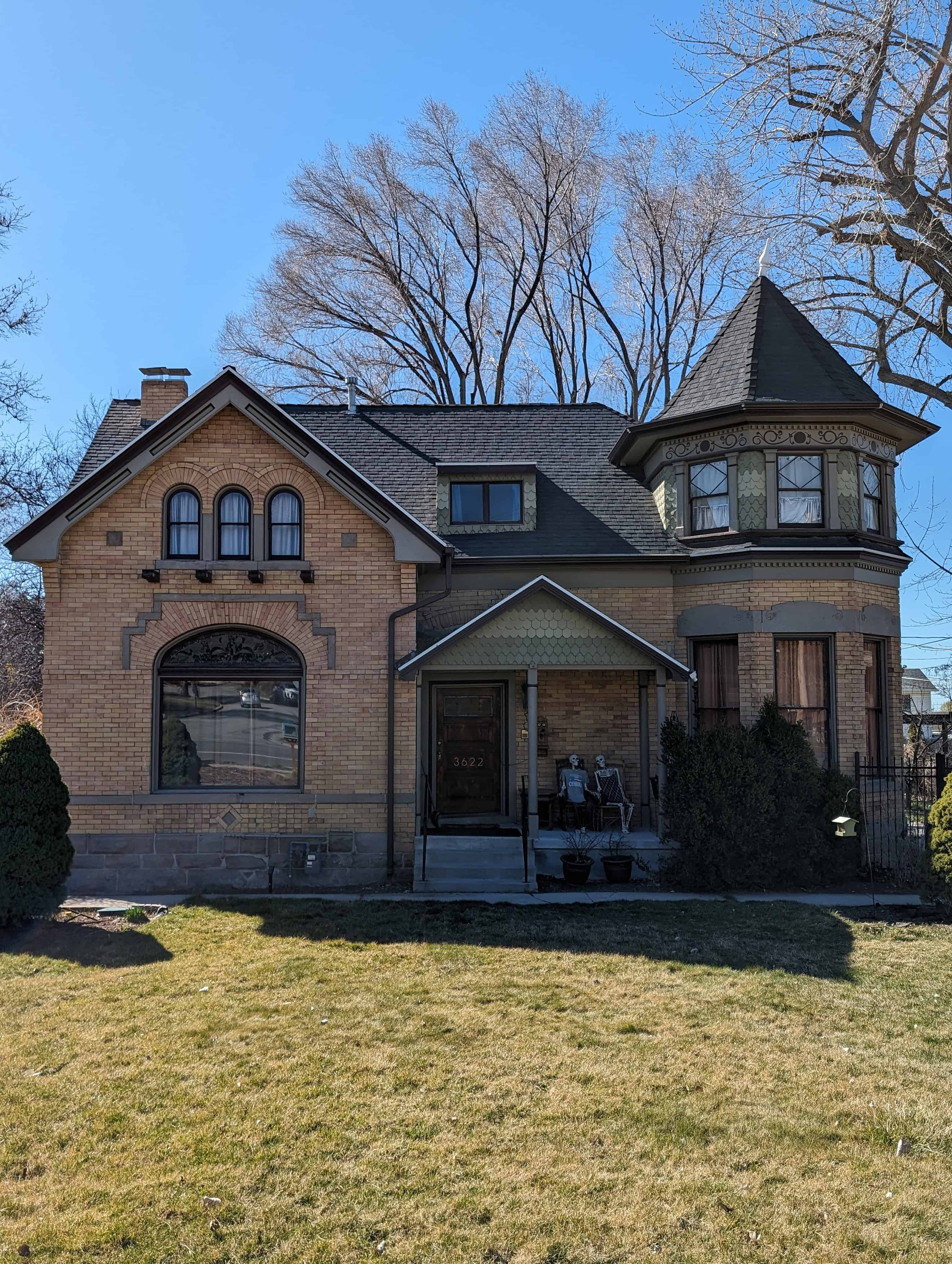 The Victorian Eclectic style is reflective of changes that occurred in Utah near the turn of the century. The architecture in Utah was founded in American building traditions and the early builders had been, for the most part, isolated from the secular influences of much of the country and used established methods brought with them from their homes of origin. As Utah grew and became more integrated with non-Mormons, the architectural styles that were made popular through pattern books were readily available to Utah builders. The building boom of the 1880s and 1890s corresponded with the growth of the non-Mormon population in Utah and brought with it the opportunity to bring in new building traditions such as those published in the style books, popular in Utah during the late nineteenth and early twentieth centuries. With the introduction of plan books, “the former isolation of rural areas was no longer an obstacle to building due to the widespread dissemination of information and building materials.” Plan book Victorian stylistic features were based upon the use of multiple forms and elements and were probably influential in building the uniquely stylized, eclectic, Lewis and Clara Anderson. The Victorian Eclectic style was popular in Utah between 1885-1905.