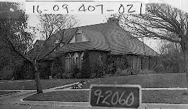 Other period revival style houses in the Yalecrest Historic District range from the chateau-like French Norman (30 examples), gambrel-roofed Dutch Colonial (12), Jacobethan Revival (15), and Spanish Colonial Revival (6) to the eclectic, combining several styles. A number of imposing French Norman style houses are found in the Normandie Heights subdivision area, developed between 1926 and 1935 with large irregularly-shaped lots on serpentine streets and substantial houses. The Leo Bird house was owned by former Mormon Church president Ezra Taft Benson and has a unique sculptured wooden roof. It was built in 1929 at 1389 East Harvard Avenue [Photograph 23]. An expansive neighboring house, built and owned by the contractor Eugene Christensen in 1933 at 1407 East Harvard Avenue, also has the characteristic French Norman conical tower [Photograph 24]. The John Lang House is a stucco-covered Spanish Colonial with a red tile roof built in 1924 at 1100 South 1500 East [Photograph 25]. The eclectic brick one-and-a-half story house at 1757 East Herbert Avenue [Photograph 26] was built as a model home in 1928 by the prolific builder Philip Biesinger. has the rolled edge roofing imitative of thatch, one of the characteristics of period revival houses.
